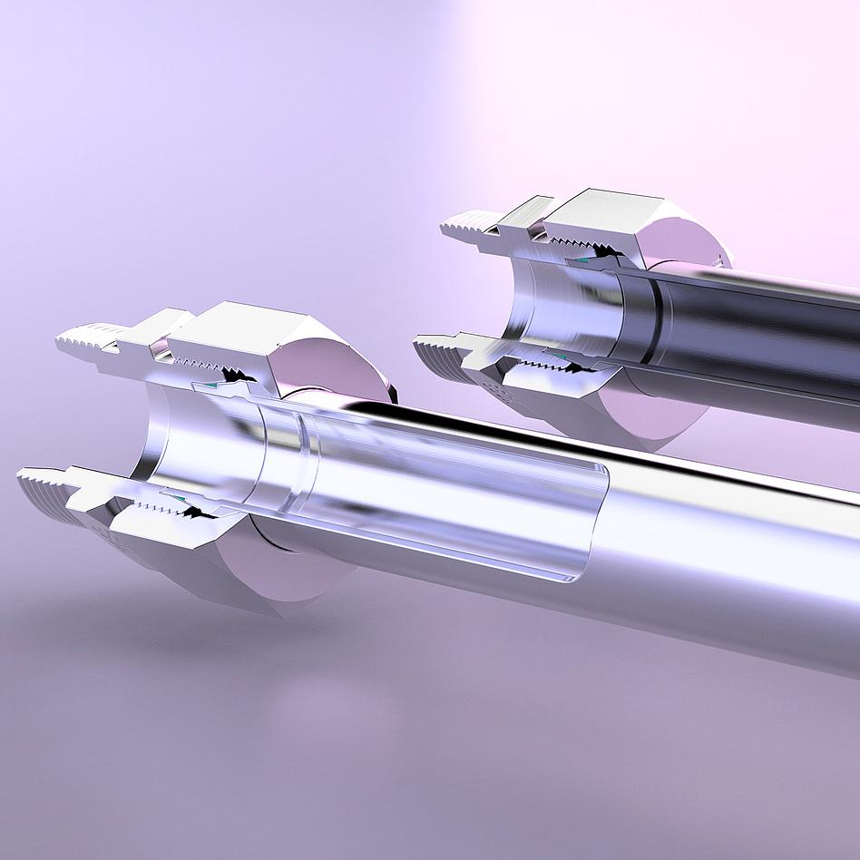 Neben der Oberflächenbeschichtung finden auch weitere Systemlösungen von VOSS Anwendung im Offshore-Bereich: Ein typisches Beispiel ist VOSS Form SQR – ein Rohrumformsystem für Hydraulikleitungen aus Stahl und Edelstahl. Es garantiert Leckagesicherheit durch eine metallische Abdichtung mit zusätzlicher FKM-Weichdichtung. Hierdurch werden höchste dynamische Belastungen, wie Schwingungen oder spontane Lastwechsel, wirksam aus dem Verbindungsbereich abgeleitet. Die einfache Installation und das unkomplizierte Handling reduzieren Nacharbeitsbedarf und Wartungsintervalle erheblich – ein entscheidender Vorteil angesichts des zunehmenden Fachkräftemangels.